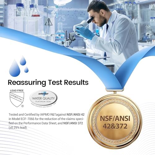 - Certification, safe material: This water filter has passed authoritative NSF/ANSI 372 certification. Not only do we firmly control the filter material but also adopt lead-free and BPA-free materials to produce the filter housing. Please flush black carbon filter for 1 minute and fluoride filter for 20 seconds before use by connecting to faucet. Note: if faucet not fully compatible, splashing may occur but won't affect product.