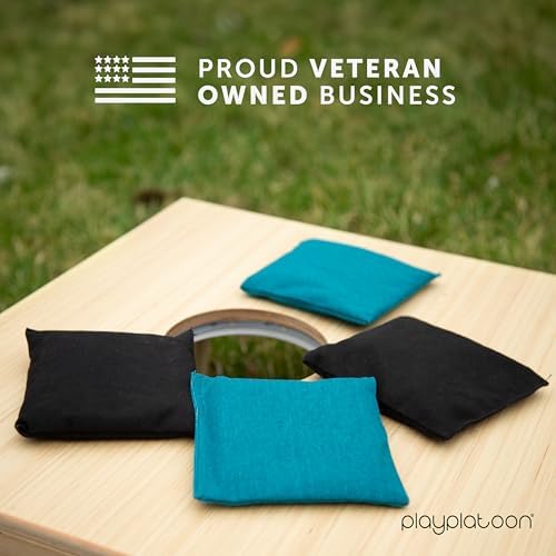 - DURABLE BEAN BAGS - This set of 8 high quality duck cloth Teal and Black cornhole bean bags are double stitched to safely toss over and over without the fear of bursting during your high stakes cornhole game.