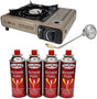 - DUEL FUEL - Compatible with both butane (4 Butane Fuel Included) and propane fuel (Fuel not included), Operates on a single butane cartridge 8 oz or a propane cylinder 16.4 oz , Propane converter Regulator Included, **With Propane connect the adapter hose to the stove first before connecting to the 16 oz Propane tank***