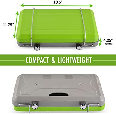 Flame King VT-101 2-Burner Portable Camping Stove Grill, Great for Outdoor Cooking, Backpacking, Compatible with 1LB Propane Gas Bottle