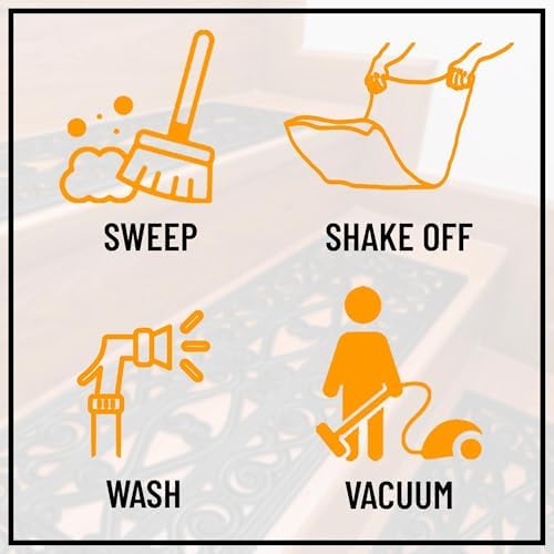 - [ALL WEATHER NONSLIP RUBBER]: This stair tread set is made with durable, high quality and all-weather rubber material; The rubber backing minimizes slipping and all-weather protection makes the stair treads long lasting and can be outside all year long with its all-season viability and waterproof material