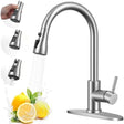 - Three Modes for Versatility - Multi-function kitchen sink faucet(STREAM, SPRAY, PAUSE) meets varying wash requirements, and the high arch gooseneck design makes it easy to rinse high pots and pans