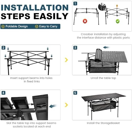 - Easy Assembly & Compact Storage:Unlike traditional folding tables, our roll-up design allows for quick setup and compact storage, saving you time and space.
