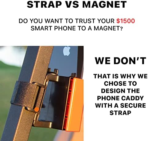 - SECURE - Would you trust your $1500 cell phone to a magnet? We don’t. That is why we opted for a secure strap to attach the Phone Caddy to the golf cart. The piece of mind that the Phone Caddy won’t come off the cart allows you to worry about your golf game, not your phone.