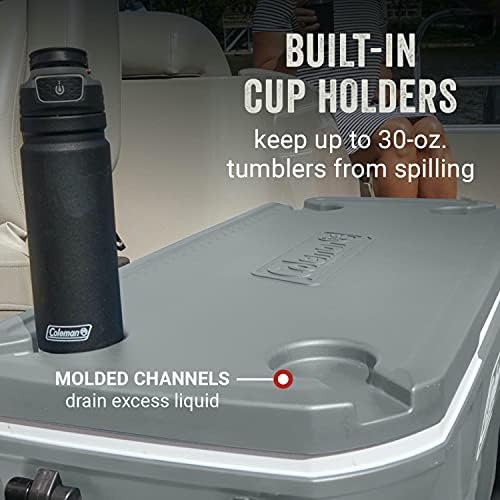 - CUP HOLDERS WITH DRAIN: Molded into the lid to keep drinks from spilling; fit up to a 30-oz. tumbler