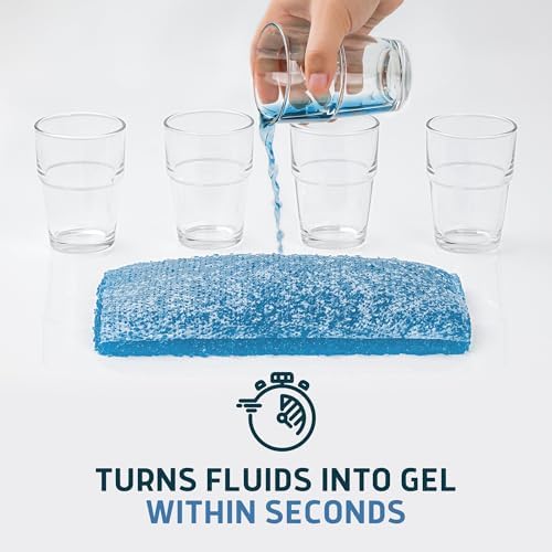 - No More Spills or Splashes - The included super absorbent pads turn water-based & body fluids (up to 35 oz /1000ml) into a gel within seconds while reducing odors.