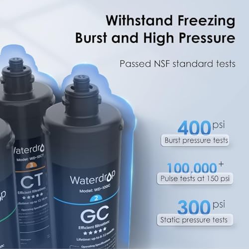 - ๐๐จ ๐ฅ๐๐๐ค๐ข๐ง๐ ๐จ๐ซ ๐๐ซ๐๐๐ค๐ข๐ง๐ ๐ฐ๐ข๐ญ๐ก ๐ก๐ข๐ ๐ก๐ฅ๐ฒ ๐ฉ๐ซ๐๐๐ข๐ฌ๐๐ ๐ญ๐๐๐ก๐ง๐ข๐ช๐ฎ๐: The under sink water filter adopts strong materials with an upgraded design. In addition, the age-resistant and freeze-resistant materials make the system twice thicker. The under counter water filter system for kitchen has also passed 400 psi burst pressure, 100,000+ pulse tests at 150 psi, and static tests at 300 psi. These tests prove that the durable integral design clears up worries about cracking cases and leaking issue