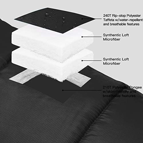 - Water Resistant & Comfort: Lining adopt 240T Rip-stop Polyester Taffeta water-repellent and breathable features, it effectively increases the toughness of the sleeping bag. and with double layer synthetic loft microfiber,provides greater comfort for your body.