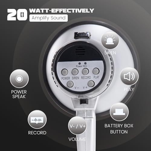 MyMealivos Portable Megaphone Bullhorn 20 Watt Power Megaphone Speaker Voice and Siren/Alarm Modes with Volume Control and Strap (Silver)…