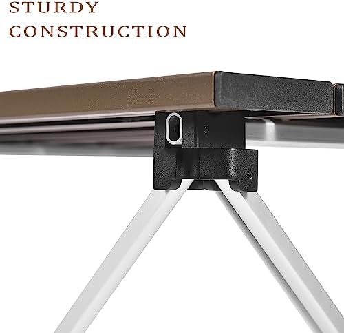 - User-friendly Design ---- Suitable table height for all most camping chairs or stools. Our folding camp table is easy to install, just unfold the aluminum frame, press the two rails into the grooves first, then press the table top into the grooves, and you have a sturdy traveling table. Perfect for drinking coffee at home, as a beach table, or picnic table for cooking and dining.