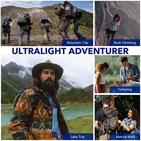 - 【Ultralight For Any Adventure】Lightweight and portable camping accessories weighs less than 3.5 ounces, which fit your hands, pocket, bag and act as a backpacking gear. It is ideal for hiking, camping and travelling. Always be prepared in emergency supplies will help you reduce fear, anxiety, and losses during water shortage and other emergency circumstances.