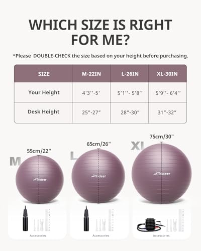 Trideer Yoga Ball - Exercise Ball for Workout pilates Stability - Anti-Burst and Slip Resistant for physical therapy, Birthing, Stretching & Core Workout, Office Ball Chair, Flexible Seating, Home Gym