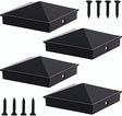 Azdele 4x4 Aluminum Pyramid Post Caps Cover for 4x4 Nominal Wood Post(Actual/True 3.5" x 3.5"), with Matte Finish Powder Coated Surface, for Fence Wood Post of Decks or Corridors(Black, 4 Pack)