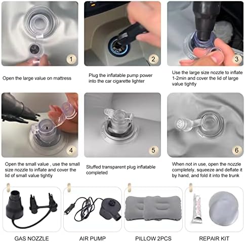 - ππ Car Inflatable Mattress Is Easy To Inflate, Equipped with car power fast charging electric pump for air mattress,Used to connect car power socket,Open exhaust valve,Press and discharge air,Double-layer air nozzle,let The air can only enter,And it can be inflated quickly and easily.This Car Air Mattress fits Saloon Car, SUV, MPV (except for the Lengthen Lincolns), Truck, Minibus and Minivan.