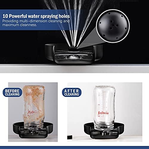 - Reaches where you can't:From baby bottles to wine glasses to travel cups, it conveniently rinses virtually any drinkware, so you can spend less time soaking and scrubbing. Black finish resists water spots and fingerprints