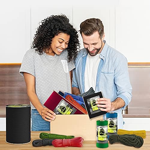 - MULTIPURPOSE: versatility, flexibility and great strength of the rope makes it a multi-functional tool. It is used as a tent cord to set up tents, safely secure or hang heavy items such as kayaks and ladders. Use paracord as: clothesline, fish line, pet leash, for securing hammock, bundling items (firewood), boot lace replacement, safety rope in emergency situations and more. Great for crafting custom lanyards, bracelets, belts, dog collars, wrapping handles & other DIY projects.