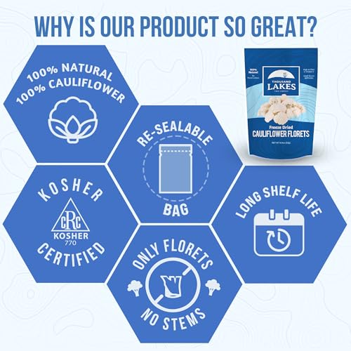 Thousand Lakes Freeze Dried Vegetables - Cauliflower Florets and Stems 2-pack 0.8 ounces (1.6 ounces total) | No Salt Added is backordered and will ship as soon as it is back in stock.