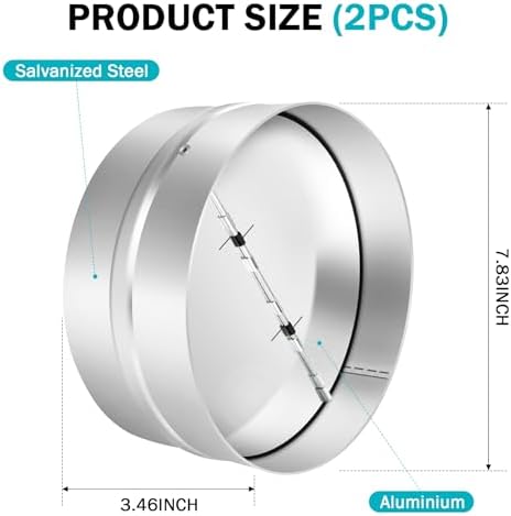 - 【Material】The 8 inch backdraft damper is made of a Galvanized steel, the flap leaves are made of aluminum