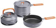 - ALL IN ONE SET - All components including a pot with lid (Size: 1.5L), a kettle with lid (Size: 0.8L) and a frypan (Size: 0.7L) can be perfectly packed into a small camping set, it's super compact and ideal for 2-3 persons camp and backpack use.
