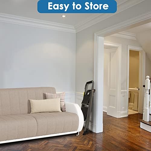 - SAFETY & STABILITY: The high-quality steel frame is sturdy and durable. The safety buckle behind the pedal will automatically lock when in use, and the cross metal support strengthens the support of the pedal to make the ladder in use more stable and safer.
