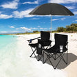 ReunionG Double Folding Camping Chairs, Portable Beach Chairs with Removable Umbrella & Mini Table Carrying Bag, Outdoor Lawn Chairs for Picnic, Patio, Pool, Park (Black)