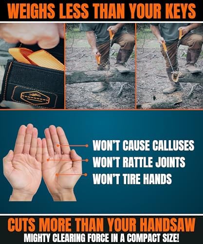 - LESS EFFORT, CUTS FAST, WON'T GET STUCK: 2x Faster Cut&Clear combines 48 Tiger Claw Teeth with 48 Clog-Clearing Bulldozer Teeth. So you can cut deeper and faster, for longer than any other tactical hatchet camping supplies. We fit more camping knife teeth per square inch too, making this the ultimate people power portable chain saws, folding cable saw for wood double sided, limb saw chain, tree cutting rope with handles, tool kit hiking gear string saw for doing it all.