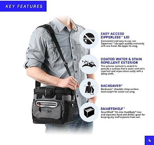 - TITAN DEEP FREEZE ZIPPERLESS HARDBODY COOLER: Zipperless cooler features a patented, "flip-open" Zipperless lid for quick access to food and drinks; Keeps ice for up to two days* and holds up to 9 cans