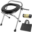 Upgraded Heavy Duty Stainless Steel Portable Toilet for Camping, Sturdy 350LBS Camp Toilet Portable, Portable Camping Toilet with Soft Seat/Toilet Bags, Black Folding Toilet for Hiking, Travel