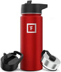 IRON °FLASK Camping & Hiking Hydration Flask with 3 Lids - Stainless Steel, Double Walled & Vacuum Insulated Water Bottle - Leak Proof & BPA Free (Fire Red, Straw - 18 oz)