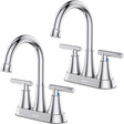 Bathroom Faucets for Sink 3 Hole, Hurran 4 inch Chrome Bathroom Sink Faucet with Pop-up Drain and Supply Hoses, Stainless Steel Lead-Free Centerset Utility Faucet for Vanity RV, 2 Pack
