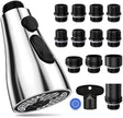 Kitchen Faucet Head Replacement 3 Modes with 12 Adapters, Pull Down Spray Head for Kitchen Faucet, Kitchen Sink Faucet Head G 1/2, Sprayer Head Replacement, Chrome