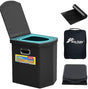 - 【Multifunctional】Our camping potty can be used for outdoor, truck, hiking, long travel, boating and camping, freely switch various usage modes, as storage box, trash can, bar bucket, small dining table, retractable stool and indoor toilet.