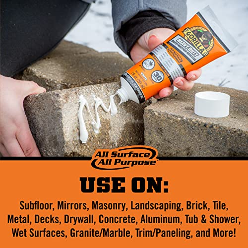 Gorilla Heavy Duty Construction Adhesive, White Glue, 7 Ounce Squeeze Tube (Pack of 2) - Gap Filling and Waterproof