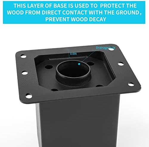 - Unique design: There is a partition at the bottom of the 4x4 post base, which is designed to be completely separated from the ground. Long term use will not cause the wood to rot due to rain. There is a small square box in the middle of base to make it more stable