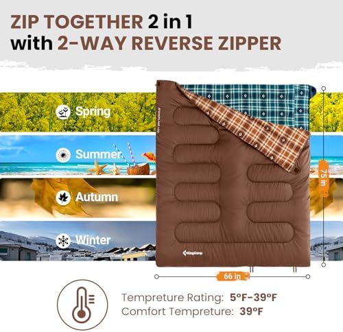 - MULTIFUNCTIONAL DESIGN-More Than Just a Sleeping Bag: This versatile sleeping bag offers more than just a place to sleep! The 2-way zippers allow you to zip two sleeping bags together for couples or family camping. Unzip the bottom for extra ventilation to cool your feet on warmer nights. Not only can it be used as a sleeping bag, but it can also be transformed into a blanket or picnic mat for family trips. Plus, it's machine washable, making cleaning a breeze for frequent use.