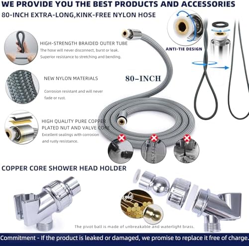 - Easy Installation in Minutes: Upgrade your bathroom effortlessly—no tools required;The package includes everything you need: a shower head,extra long hose, holder, mineral stone beads, water-saving valve, Teflon tape, spare water outlet panel, and sealing rings;Perfect for decorating or renovating personal apartments