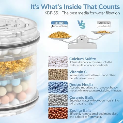 - Shower Filter for Hard Water: Do you suffer from dry skin, weak hair, or unpleasant smells coming from your showerhead? Look no further than our revolutionary shower filter system, featuring a cutting-edge blend of the most patented KDF-55, advanced Calcium Sulfite, Vitamin C, and More. MakeFit water softener shower head effectively removes chlorine, fluoride, heavy metals, and other contaminants from your shower water, providing clean and pure water for your enjoyment