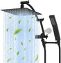 Hibbent All Metal 10'' Rainfall Shower Head, Dual Shower Head Combo, High Pressure Handheld Shower Wand, 16'' Adjustable Arc-shaped Shower Extension Arm, 71'' Hose, Showerhead Holder, Matte Black