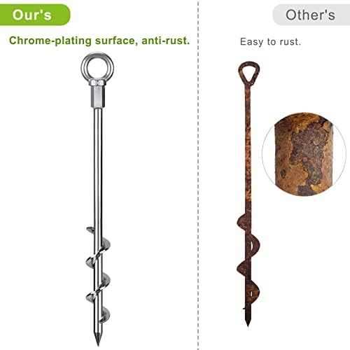 - 【Stable & Reliable】The 5-inch fully welded spiral anchors easily penetrate hard or rocky soil, providing a firm hold for your tents, trampolines, and other outdoor setups, even in high winds