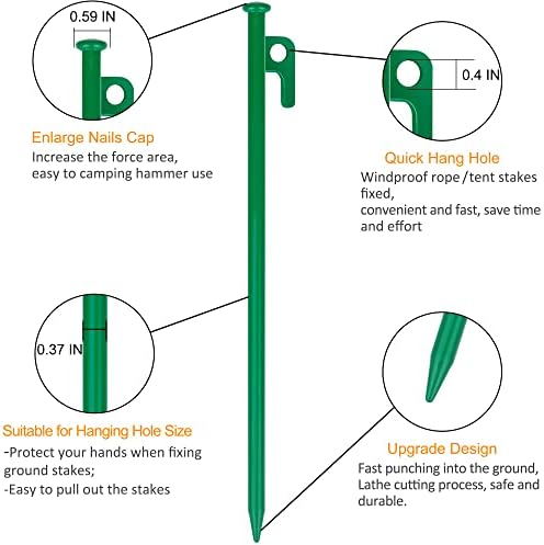- 【Strong Holding Power】The large head and sharp end of the nail make it easy to penetrate hard or rocky ground, in case of hurt yourself when use them