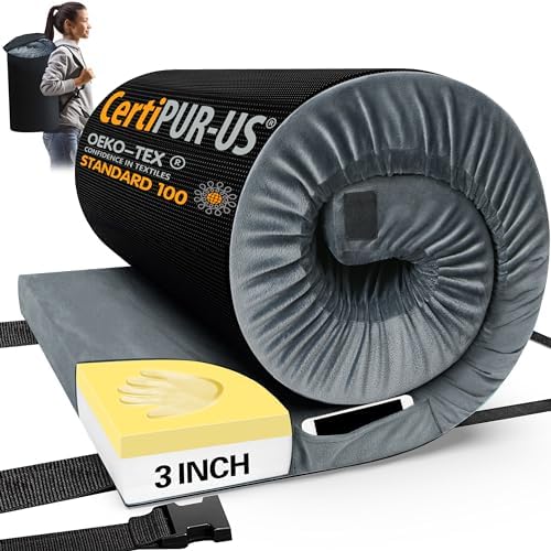 CYMULA Memory Foam Camping Mattress Pad, CertiPUR-US Sleeping Mat, Portable Roll Up Mattress for Adults, Camping Bed Pads for Sleepover, Car Bed with Travel Bag is backordered and will ship as soon as it is back in stock.