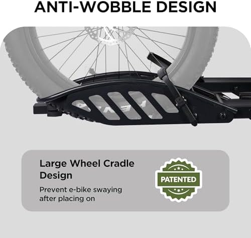 - SAFE AND SECURE ON OFFROAD: Comes with 2-arm fix, Anti-falloff 360° swirl structure, patent secure wheel cradles and anti-wobble structure, that secure your E-bikes in place without swaying and knocking against vehicle.