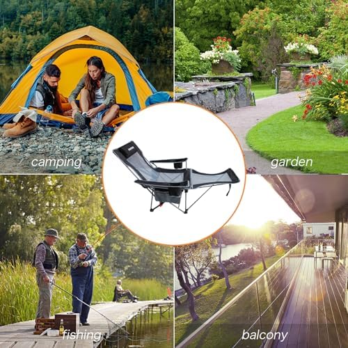 Reclining Camping Chair with Removable Footrest Lounge Chair with Headrest, Cotton Cushion, Portable Adjustable Folding Chairs for Adults Black is backordered and will ship as soon as it is back in stock.