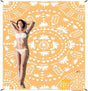 - Packs Away Easily - The polyester lightweight beach blanket doesn't take up as much space as a large picnic blanket does. The boho orange blanket folds away into a compact bag about iPad size, making it easy to store in a bag or pack in your basket for your next travel