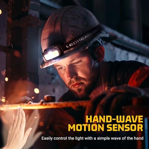 - 【Hand-wave Motion sensor】Our head lamp is fitted with the latest motion sensor technology that enables users to easily control the light with a simple wave of the hand, making it a convenient tool for your everyday life and work and avoiding soiling the head lamp rechargeable when your hands are dirty.