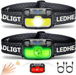 - 【14 Lighting Modes】This headlight boasts 14 different lighting modes to meet all your needs. ①In key light mode, you can easily switch between spot high mode(up to 3.5hours), spot med mode(up to 8 hours), COB flood high mode(up to 5.5 hours), COB flood med mode(up to 8 hours), green light(up to 5 hours), red light(up to 3.5 hours), and red strobe(up to 6.5 hours). ②In motion sensor mode, it provides the same 7 lighting modes for your convenience.