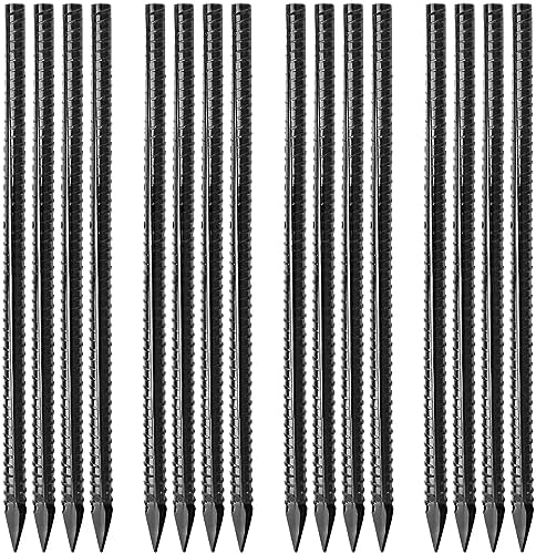 16 inches Ground Rebar Stakes (16 pcs) Heavy Duty Metal Spikes for Concrete Timber Garden Plant, Long Straight Steel Stakes for Tent, 3/8" Thickness Ground Anchors with Chisel Point End, Black is backordered and will ship as soon as it is back in stock.
