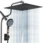 - 【12" Rain Shower Head】12" square stainless steel shower head + 9-mode filtered shower head, large panel, allowing you to enjoy the perfect shower experience under the waterfall. The ball joint offering 360° rotation is made of brass. Compared to plastic ball joints on the market, our joints are stronger and do not crack or leak. Can be used in high pressure and high temperature environment.