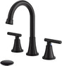 Bathroom Faucets for Sink 3 Hole, Hurran Matte Black Bathroom Sink Faucet with Pop-up Drain and Supply Lines, Stainless Steel Lead-Free Widespread Faucet for Vanity RV Farmhouse Sink