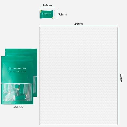 - Package Incleded - 40 x disposable compression towel tablets. Each of compression towel tablets is individually packed.Expanded size:30x24cm(11.8*9.45inch), just add a little amount of water, unfold in seconds.